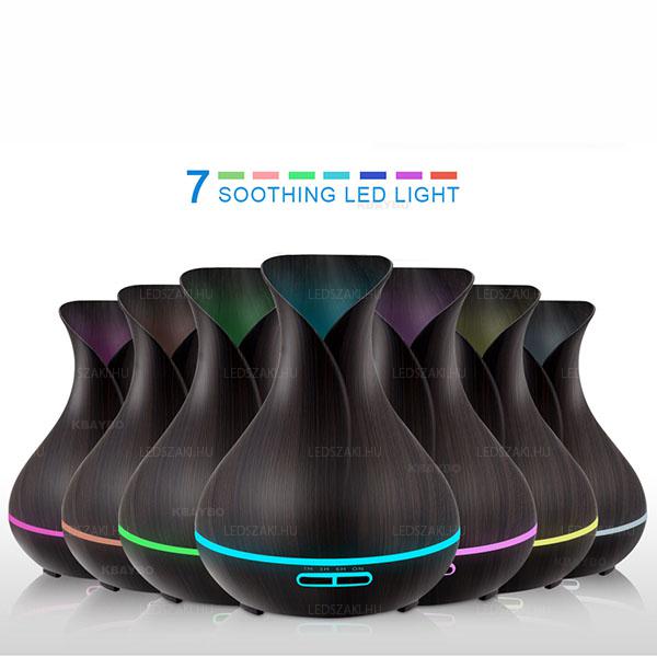 Nagyméretű Aromaterápiás ultrahangos távirányítós párásító beépített LED világítással, Famintás burkolat két féle színárnyalatban,
