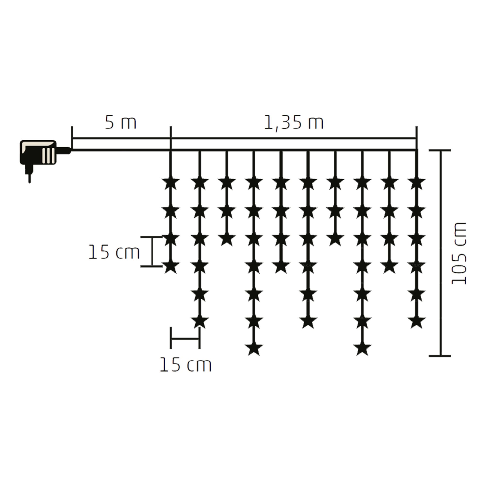 A füzér hossza 1,35 m, amelyen 50 db melegfehér LED csillag világíthatja be az Ön otthonát és ezáltal meghitt, békés karácsonyi hangulatot teremt a beltéri helyiségekben.