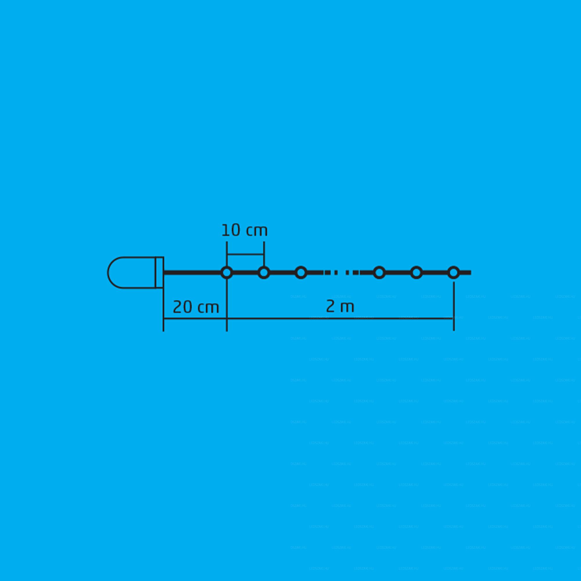 Micro LED-es melegfehér, állófényű fényű fényfüzér 20 db pontszerű micro LED-del. Lapos, könnyel elrejthető elemtartóval.