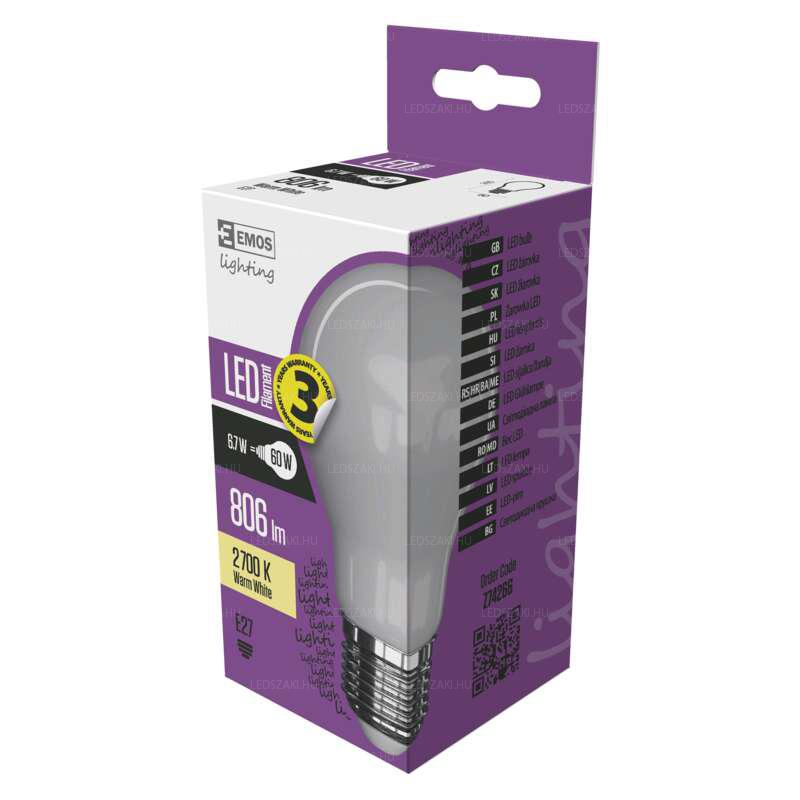 LED filament égő, OPÁL, 6,7W, 806lm, E27, 2700K