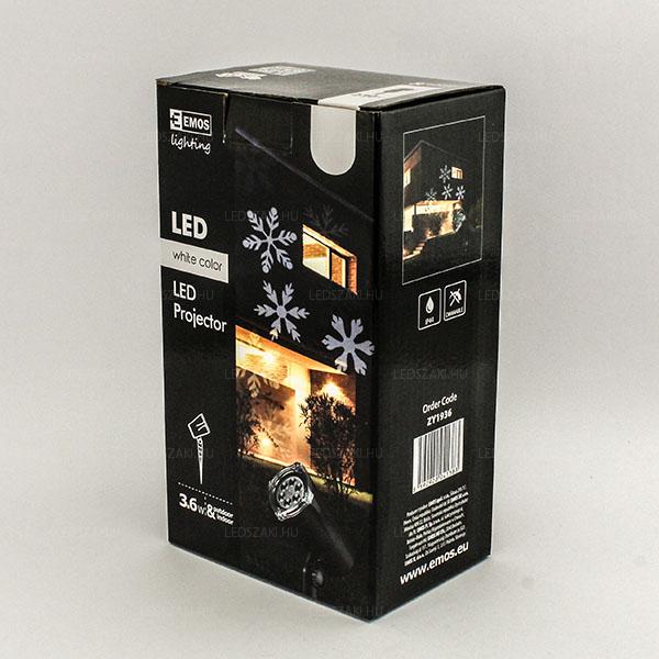 (EMOS) Kültéri karácsonyi projektor, hópihe alakú mozgó képvetítő, hidegfehér színű, 4w IP44