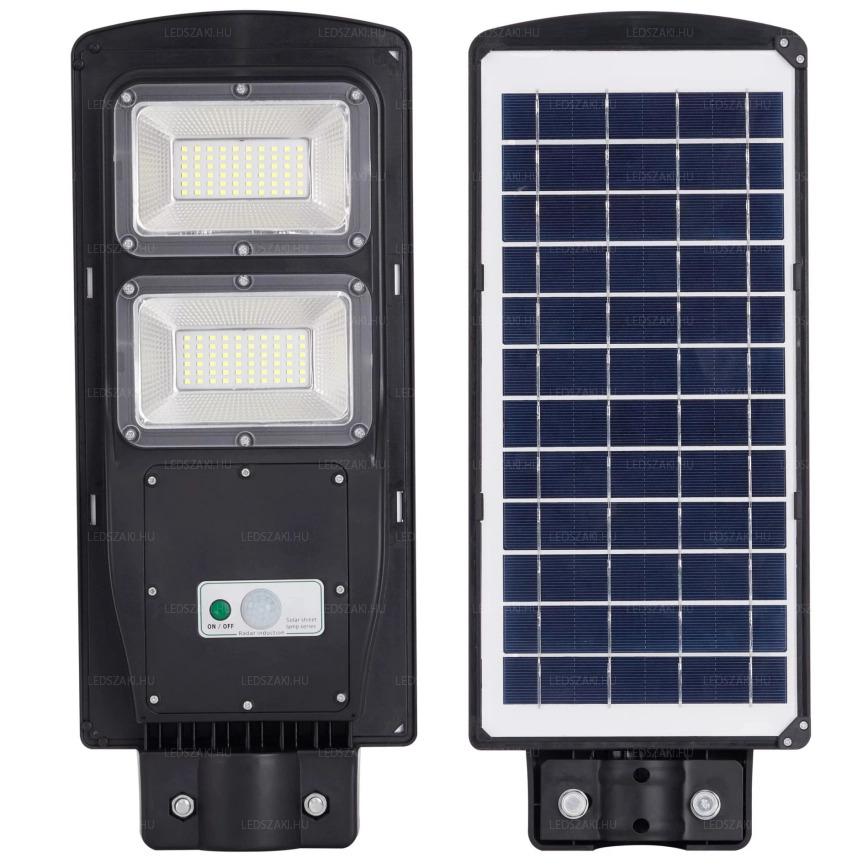 60W-os Napelemes, kültéri LED utcai lámpa. Beépített akku, automatikus fényérzékelés. 2 fényerő fokozat Folyamatos 50% mozgás esetén 100% 1év garancia